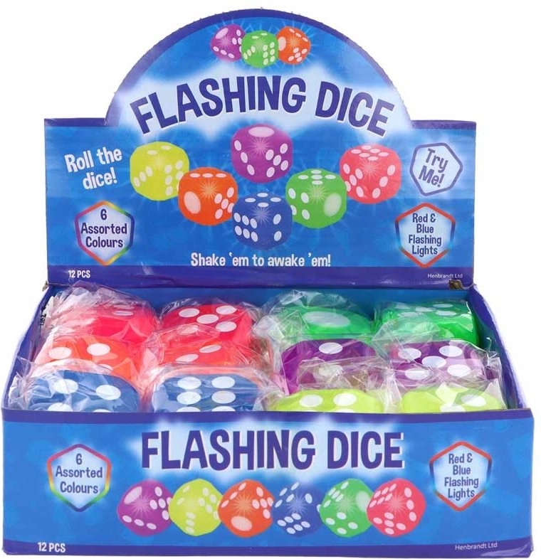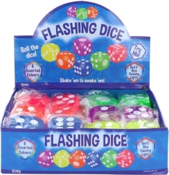 Lõbus kummist mängutäring integreeritud LED-idega, mis hakkab lauale maandudes värviliselt vilkuma. Ideaalne pidudeks, mängudeks ja õhtuseks meelelahutuseks. Komplektis on vahetamatud patareid, nii et täringut saab kohe kasutama hakata. Kompaktne mõõt 4 × 4 × 4 cm. Pakendis 1 tk, värv vastavalt hetkevalikule.