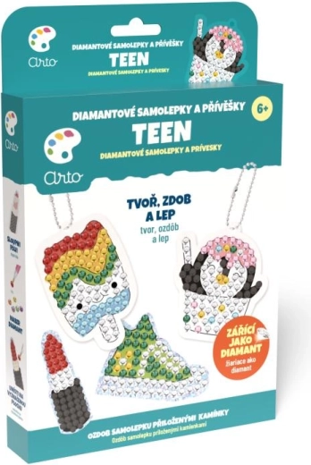 Muuda ideed sädelevateks kaunistusteks! ARTO loovkomplekt võimaldab lastel hõlpsalt luua originaalseid ripatseid ja kleebiseid. Järgi lihtsalt mallikava, aseta väikesed “teemandid” tähistatud kohtadele ning peagi valmivad säravad teosed, mis kaunistavad seljakotti, pinalit või sobivad armsaks kingituseks.