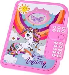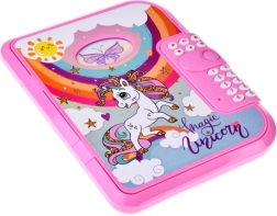 See roosa päevik võluva ükssarviku motiiviga on ideaalne lastele, kes soovivad hoida oma mõtteid ja aardekesi turvaliselt. See avaneb pärast 4-kohalise PIN-koodi sisestamist, nii et märkmed jäävad vaid pärisomanikule. Tänu ingliskeelsele hääljuhile on kasutamine intuitiivne ja mänguline.