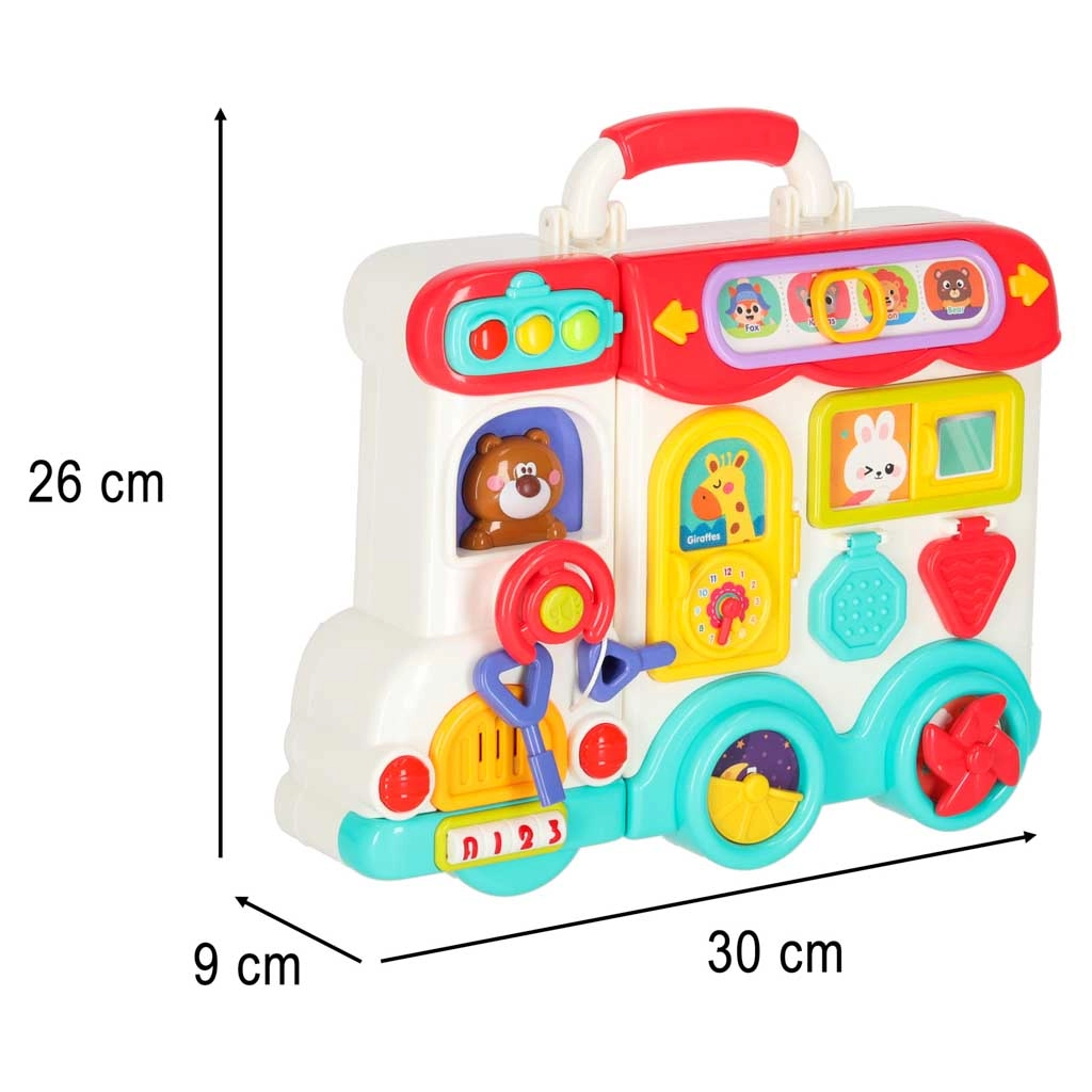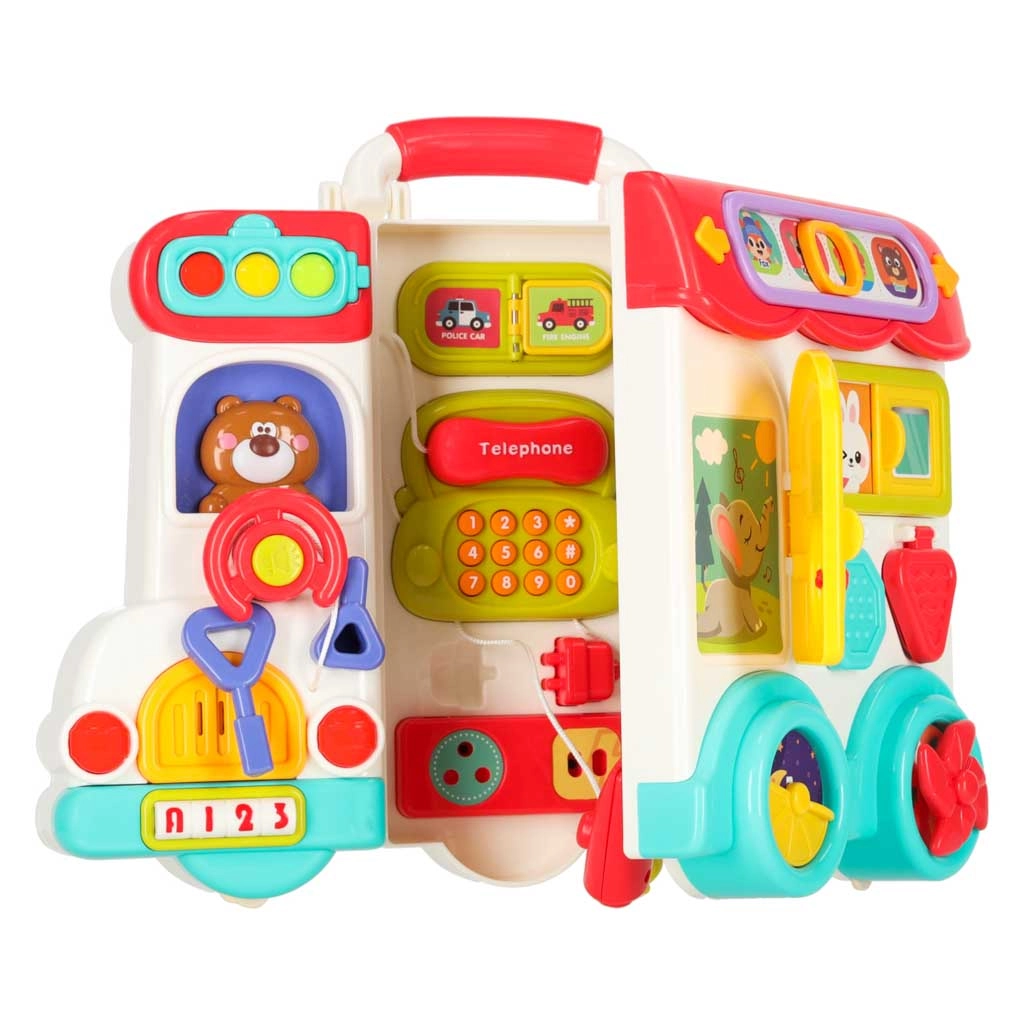Avatav buss muutub interaktiivseks paneeliks nuppude, klappide ja akendega. Laps mängib ning arendab samal ajal peenmotoorikat ja tähelepanelikkust.
