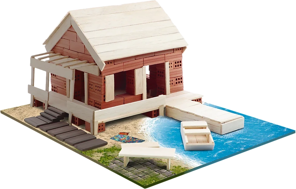 Muutu ehitajaks ja loo oma suveresidents päris savitelliste ja puidu abil. Komplekt pakub realistlikku ehituskogemust – alustest kuni lõppdetailide ja kaunistusteni. Võid järgida pildijuhendit või lasta fantaasial lennata ja kavandada oma lahenduse. Valmis ehitise toovad ellu kaasas olevad papist tegelased.