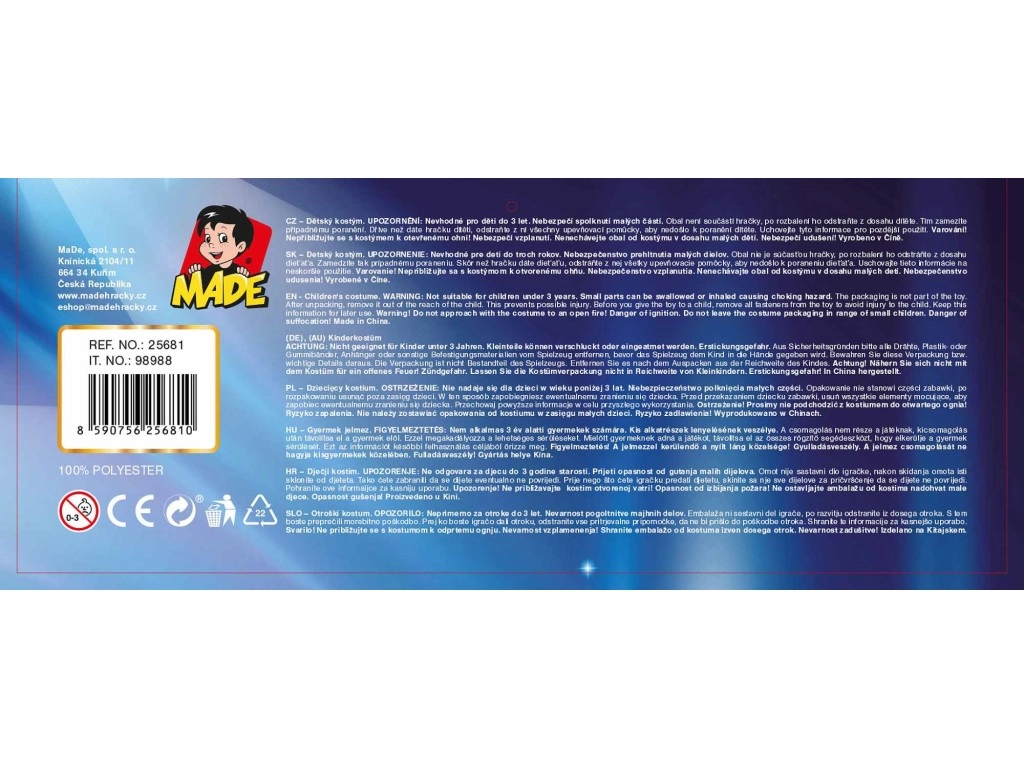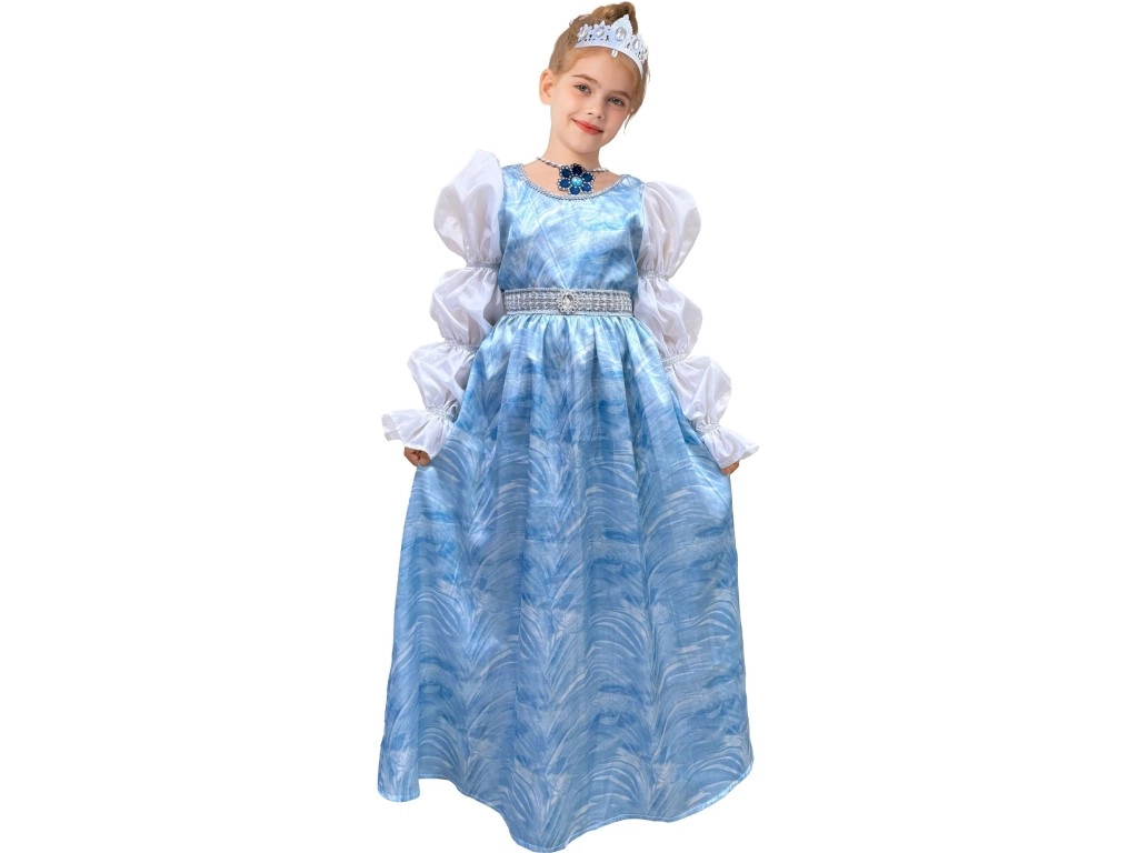Süüta lapse fantaasia võluva Tuhkatriinu kostüümiga! Need karnevalikleidid 110–120 cm pikkusele rõõmustavad väikseid printsesse oma õrna disaini ja mugava lõikega. Komplektis on kaelakee ja juuksekroon, nii et sinu lapsel on kõik valmis karnevaliks, lastepeoks ja lasteaia ürituseks.