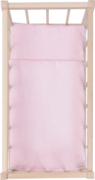 See puidust nukuhäll ühendab loodusliku välimuse, ohutuse ja mängurõõmu. Siledaks lihvitud, teravate servadeta puit on õrn laste kätele ning tugev konstruktsioon tagab igapäevasel mängimisel pika kasutusea. Kaasas on pehme madrats ja kahepoolne voodipesukomplekt mahedates roosades toonides, mis sobib igasse lastetuppa.