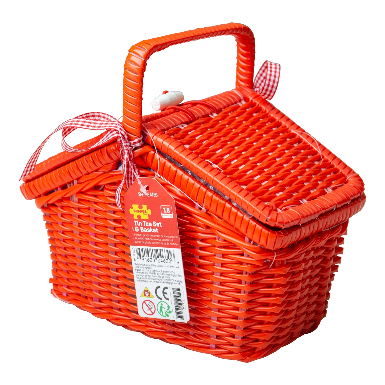 See kaunis teekomplekt sobib lastele alates 3. eluaastast. Komplektis on kõik, mida on vaja teejooja-mängu jäljendamiseks, ning kõik on paigutatud kaasaskantavasse punasesse vitstkorvi.