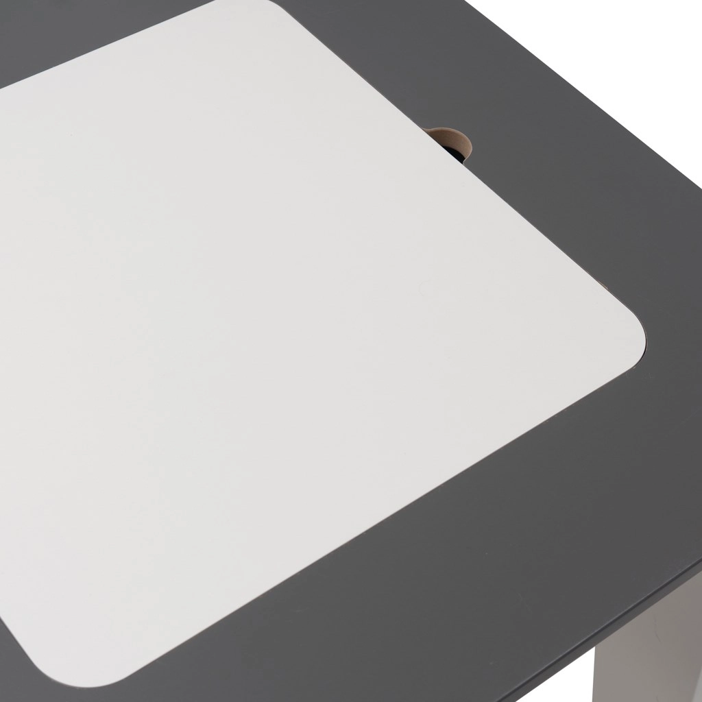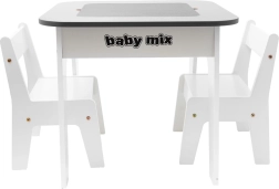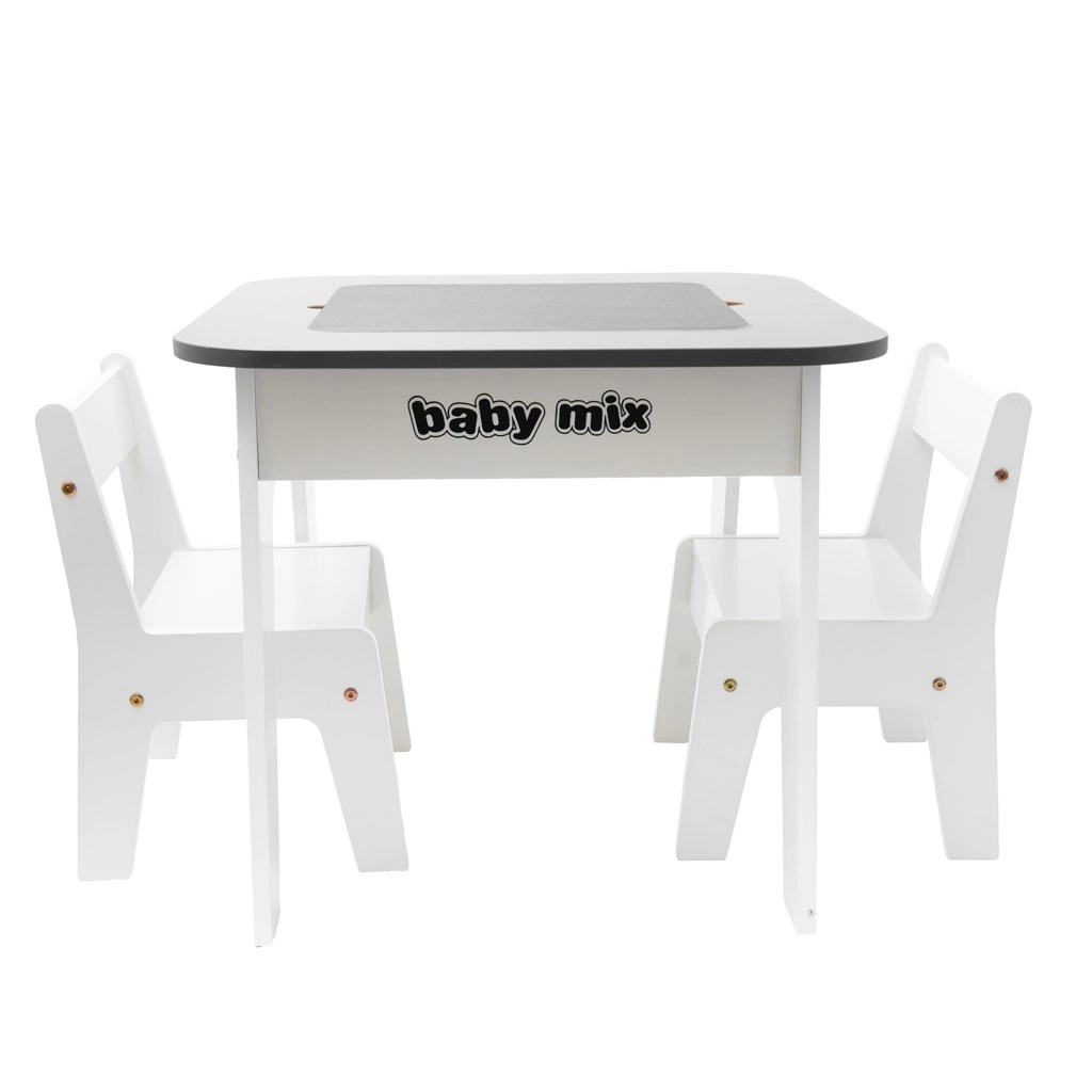 Laste laua ja kahe tooli komplekt BABY MIX Leaf Grey on loodud pakkuma maksimaalset mugavust ja korda nii mängimise kui ka meisterdamise ajal. Eemaldatav lauaplaat peidab endas praktilist panipaika pliiatsite, paberi, väikeste mänguasjade või klotside jaoks – kõik on alati käepärast ja tööpind püsib korras.