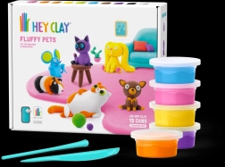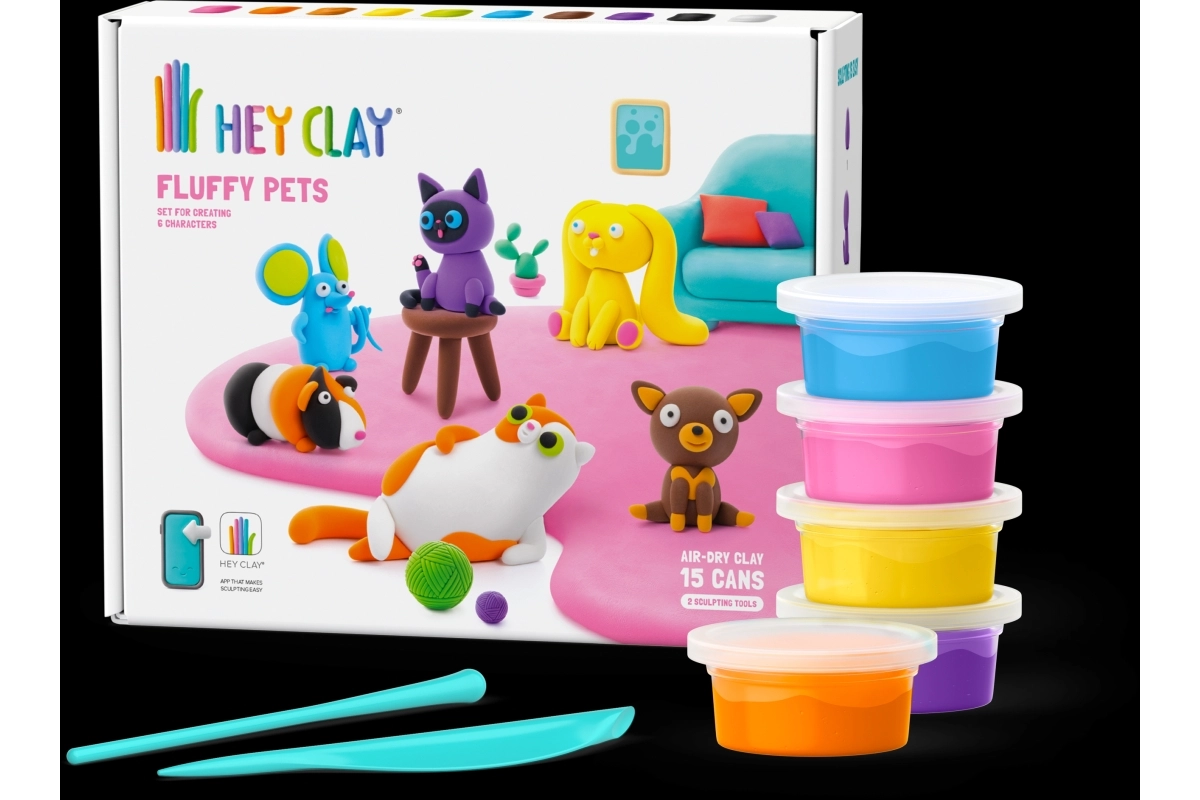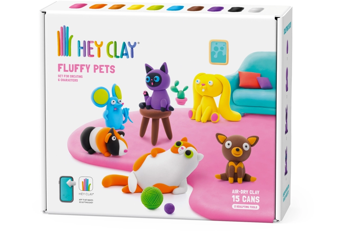 Avasta loov lõbu Hey Clay Fluffy Pets komplektiga – pakendis on 15 topsi kerget, lõhnavat ja õhu käes kuivavat massi, millega lapsed saavad samm-sammult lihtsasti armsaid lemmikuid voolida. Tänu tasuta Hey Clay rakendusele (iOS/Android) ning kaasas olevale juhendite avamiskoodile saavad nad valmistada 6 figuuri: 2 koera, 2 kassi, merisea ja hiire. Valminud mudelid kuivavad õhu käes ning muutuvad vastupidavaks mänguasjaks edasiseks mänguks. Vanus 3+.