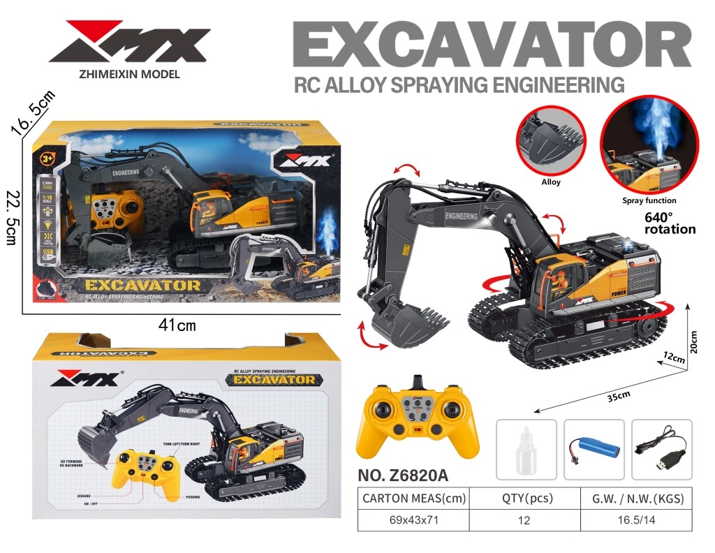 2,4 GHz sagedusel töötav juhtimine kuni 30 m ulatusega pakub sujuvat ja häireteta käsitsemist. Torn pöörleb kuni 640°, võimaldades täpselt simuleerida päris ehitustöid. Ekskavaatoril on valgus- ja heliefektid ning atraktiivne auruefekt (spray), mis võimendab sõidu ja kaevamise elamust.