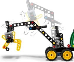 Nool pöörleb kuni 180° ning haarats avaneb ja sulgub – lapsed saavad kergesti „palgid” haarata ja tõsta ning kogeda realistlikku metsandustööd.