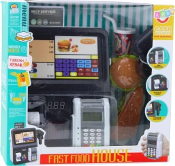 Komplekti kuuluvad ekraaniga kassa, POS-terminal, käsiskanner ning komplekt plastikust toite ja jooke FAST FOOD teemamängu jaoks. Vastupidav plastmaterjal on turvaline ning sobib nii koduseks kasutamiseks kui ka lasteaedadesse.