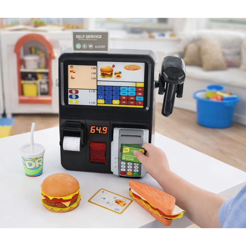 See laste iseteeninduskassa on ideaalne väikestele müüjatele ja kokkadele. Realistlikud funktsioonid – alates skaneerimisest ja kviitungi printimisest kuni kaardimakseni – loovad autentse poe või kiirtoidu keskkonna. Tänu valgus- ja heliefektidele on mäng dünaamiline ja kaasahaarav.