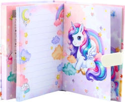 Ükssarviku motiiviga päevik on suurepärane valik lastele, kes soovivad hoida oma mõtted turvaliselt. Tänu kombinatsioonlukule muudetava koodiga on lapse privaatsus täielikult tema enda kontrolli all. Avamisel kõlab rõõmus meloodia, mis muudab iga kirjutamise erilisemaks.