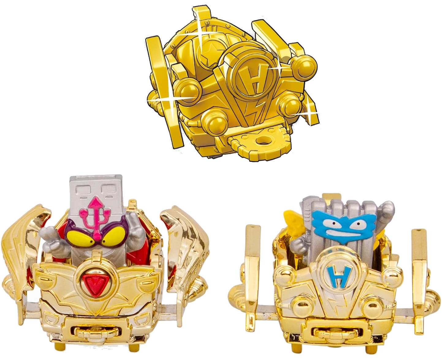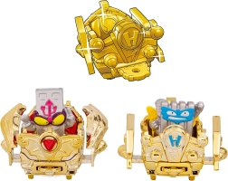 - 1× Ultra Rare figuur, 2× Gold Ultra Rare figuuri, 6× Silver Rare figuuri, 1× kuldne kangelase aerowagon, 1× kuldne kurikaela aerowagon, metallist plekkpurk