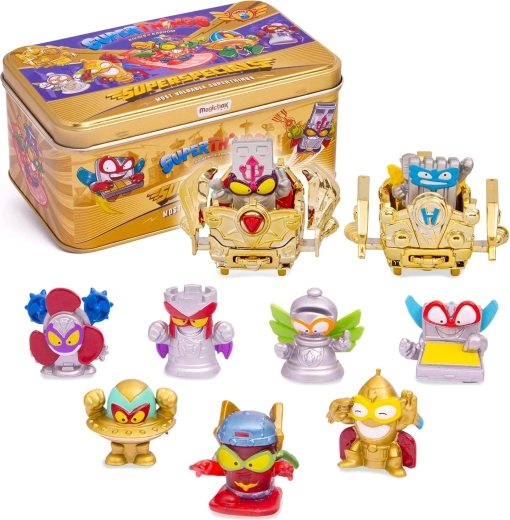 Avasta MagicBox Toysi eksklusiivne SuperThingsi kollektsioneerimiskomplekt: kuldne metallist plekkpurk, mis on täis haruldasi figuure ja sõidukeid. Pakendist leiad ülirasked-leiduvad figuurid, kuld- ja hõbeeri versioonid ning kaks kuldset aerowagoni veelgi suurema Kaboom City lõbu jaoks.