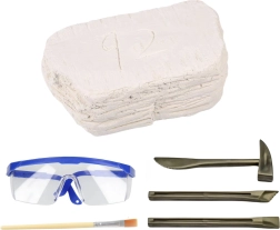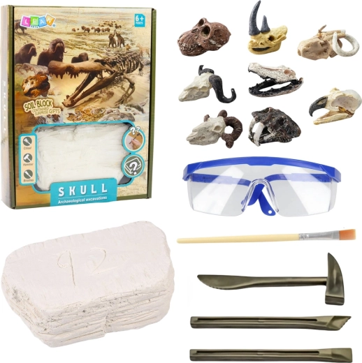 See arheoloogiakomplekt võimaldab lastel kogeda tõelisi „välja kaevamisi“. Vastupidava kipsploki sees on peidus salapärane kolju – see võib kuuluda erinevatele eelajaloolistele olenditele, seega on iga avastus ainulaadne. Tänu peitlitele/peitlitele, haamrile ja pintslile proovivad lapsed, kuidas leidu ettevaatlikult avada, puhastada ja detaile uurida.