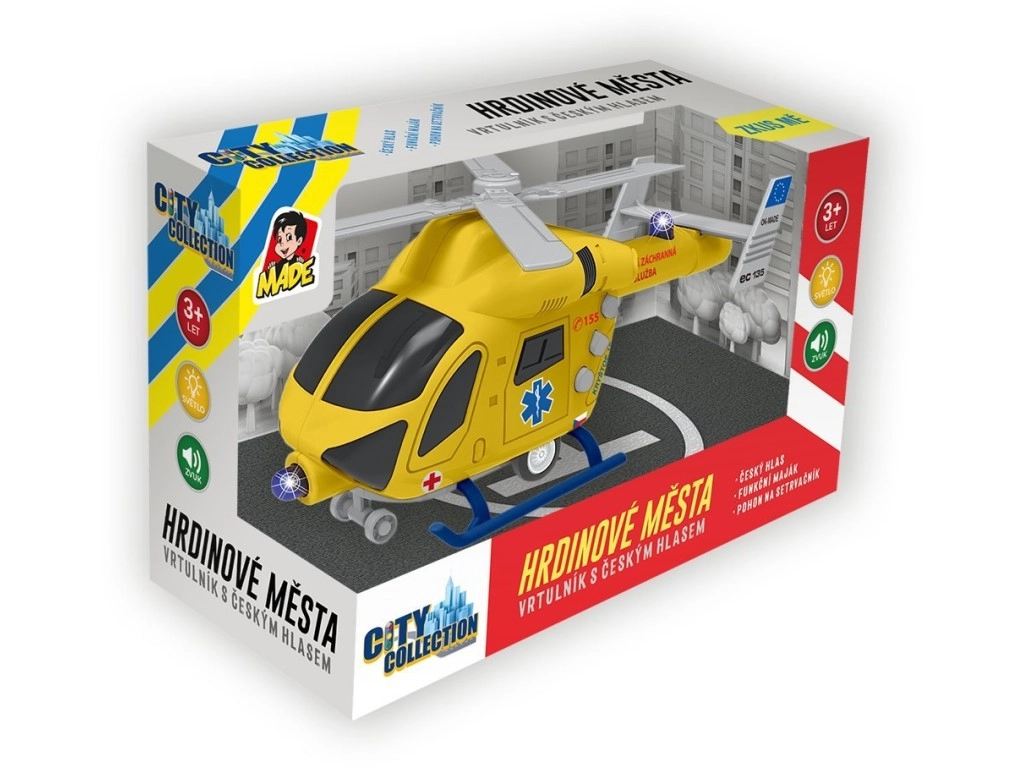 Loo koju oma helikopteriplats ja asu päästemissioonidele detailirohke helikopteriga City Collection – Linna Kangelased kollektsioonist. See mudel tšehhikeelse disainiga pakub autentseid valgus- ja heliefekte, sh tšehhikeelset dispetšeri ja piloodi vestlust, mis võimendab mänguelamust.