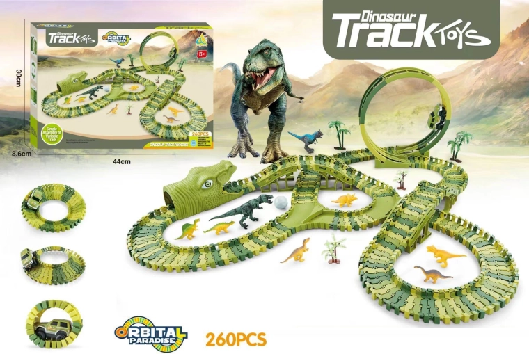 See värvikas dinosauruse autorada pakub lastele tunde lõbu ja kujutlusvõime arendamist. Tänu 260 detailile saab rada kokku panna erinevateks kujunditeks ja kõrgusteks, nii et iga mängukord on erinev. Komplektis on patareiga auto, mis sõidab mööda rada ja julgustab lapsi loovaks mänguks.