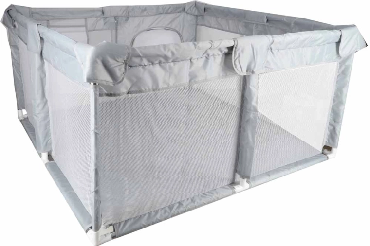 Praktiline laste mänguaedik mõõtudega 120 × 120 cm loob turvalise ja avara mängu- ja puhkeala. Võrkseinad tagavad hea nähtavuse, lukuga sissepääs lihtsustab juurdepääsu ning lihtne kokkupanek ilma kruvideta säästab aega. Stabiilsuse tagavad imemiskuppidega ühendused, pehmed tekstiilääred suurendavad turvalisust ja mugavust.