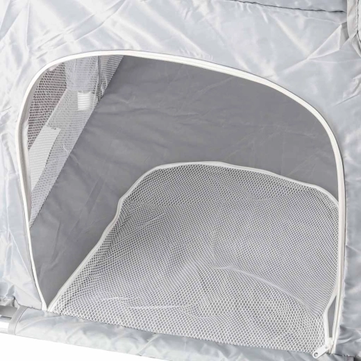 See kokkupandav mänguaedik pakub alates 6. elukuust lastele turvalist, õhulist ja hästi nähtavat ruumi mänguks ja puhkuseks. Võrkseinad tagavad suurepärase õhuringluse ja võimaldavad vanematel last paremini jälgida, samas kui pehmendatud ülaservad lisavad mugavust ja turvalisust.