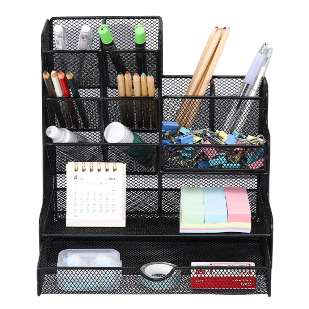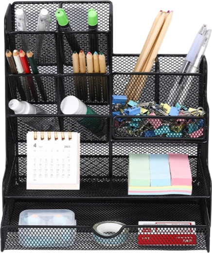 Mitmeosaline paigutus hoiab kirjutusvahendid, märkmepaberid, klambrid ja muud pisiasjad omal kohal, et need oleksid kohe käepärast.