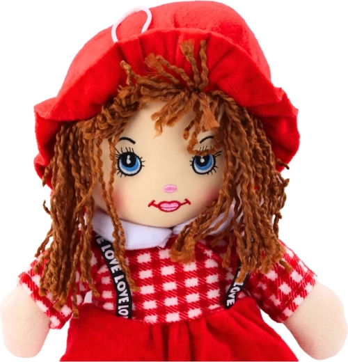 See pehme õmmeldud nukk punases ruudulises kleidis rõõmustab iga last. Tänu pehmele täidisele ja tekstiilkehale on see ohutu juba kõige nooremast east alates. Tikitud näodetailid, kootud juuksed ning sobivad kübar ja papud lisavad nukule võlu ja sõbraliku ilme.
