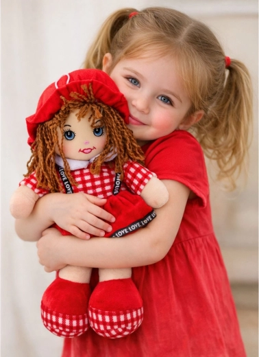 Armas 35 cm kõrgune tekstiilnukk punases ruudulises kleidis on ideaalne kõige pisematele. Valmistatud pehmetest ja ohututest materjalidest, tal on tikitud silmad ja naeratus ning kerge konstruktsioon tagab mugava kaasaskandmise, kallistamise ning fantaasia ja rollimängu arendamise.