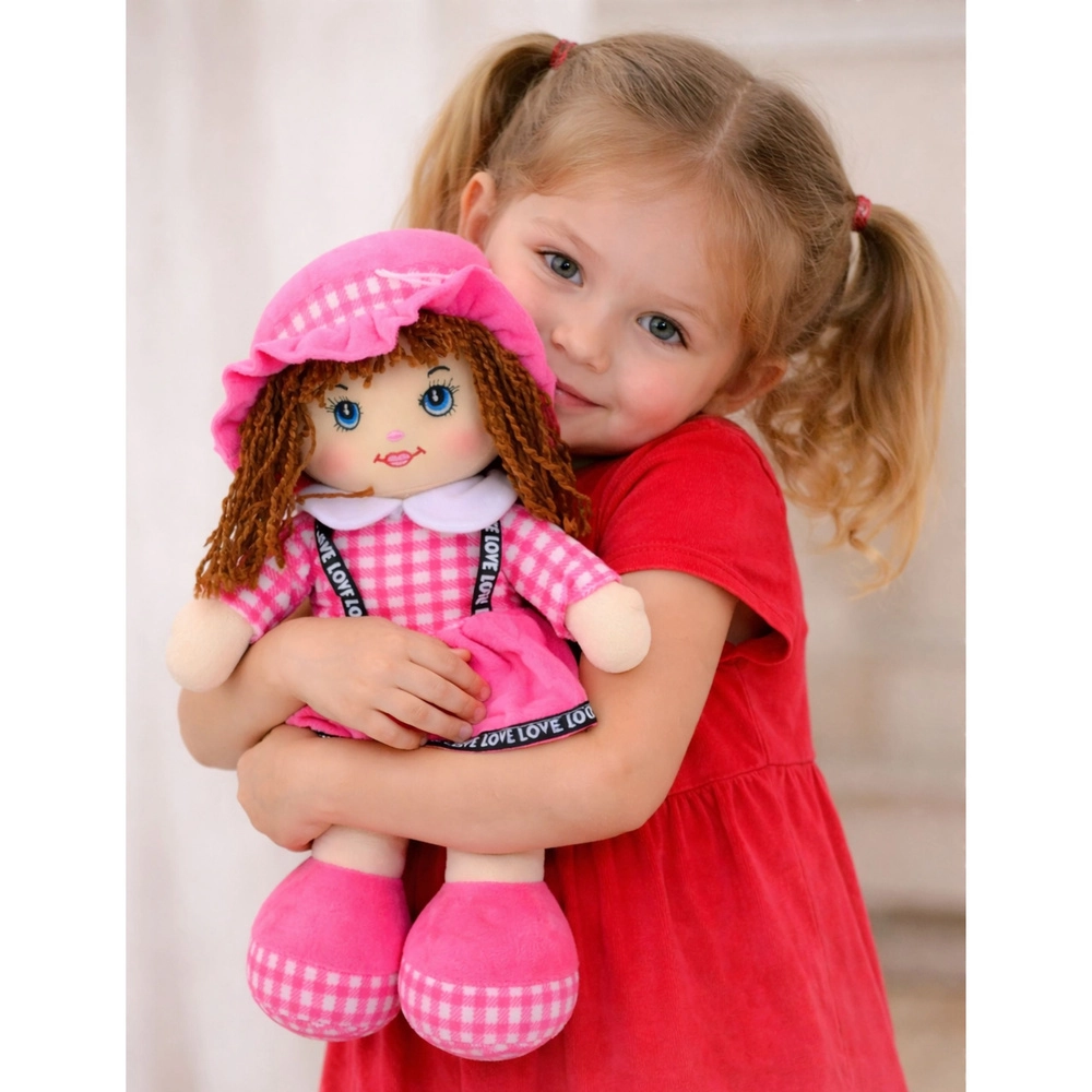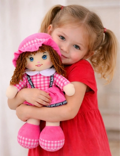 See siidine pehme nukk roosas ruudulises kleidis rõõmustab lapsi juba varajasest east. Tänu kergusele ja pehmusele on seda lihtne hoida, kanda ja kallistada, toetades turvatunnet ja emotsionaalset arengut. Lühikesed lõngjuuksed, tikitud silmad ja naeratus annavad nukule armsa ilme ning tagavad ohutu mängu ilma teravate elementideta.