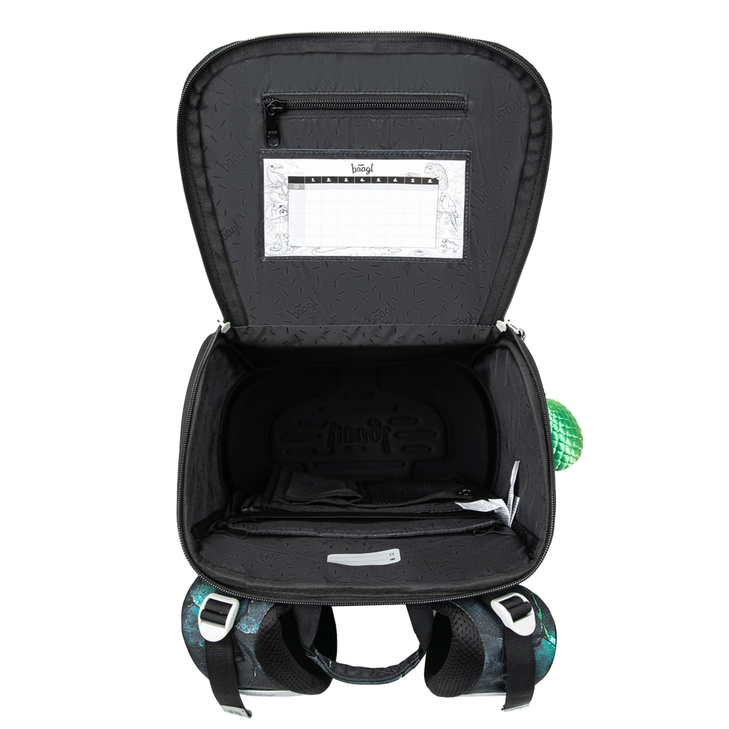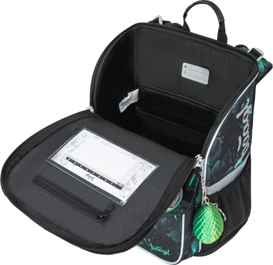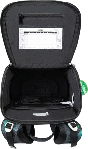 Klapplaadne avamissüsteem võimaldab lapsel ulatada tarvikuteni mugavalt otse pingist. Sees on kummihoidik õpikute kinnitamiseks ning praktiline jaotus selgeteks lahtriteks.