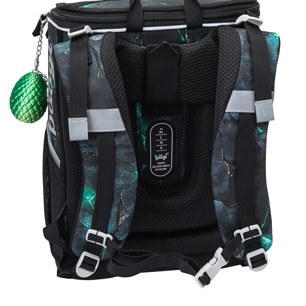 BAAGL Zippy draakonitega koolikott ühendab läbimõeldud ergonoomika ja vastupidavuse atraktiivse disainiga. Tänu ERGO ADJUSTABLE reguleeritavale seljasüsteemile saab seda hõlpsasti seada kolmele suurusele, nii et kott saab sõna otseses mõttes koos lapsega „kasvada”. Täielikult reguleeritavad rihmad ja hingav polsterdus tagavad mugava asendi seljal ja õige kaalujaiotuse.