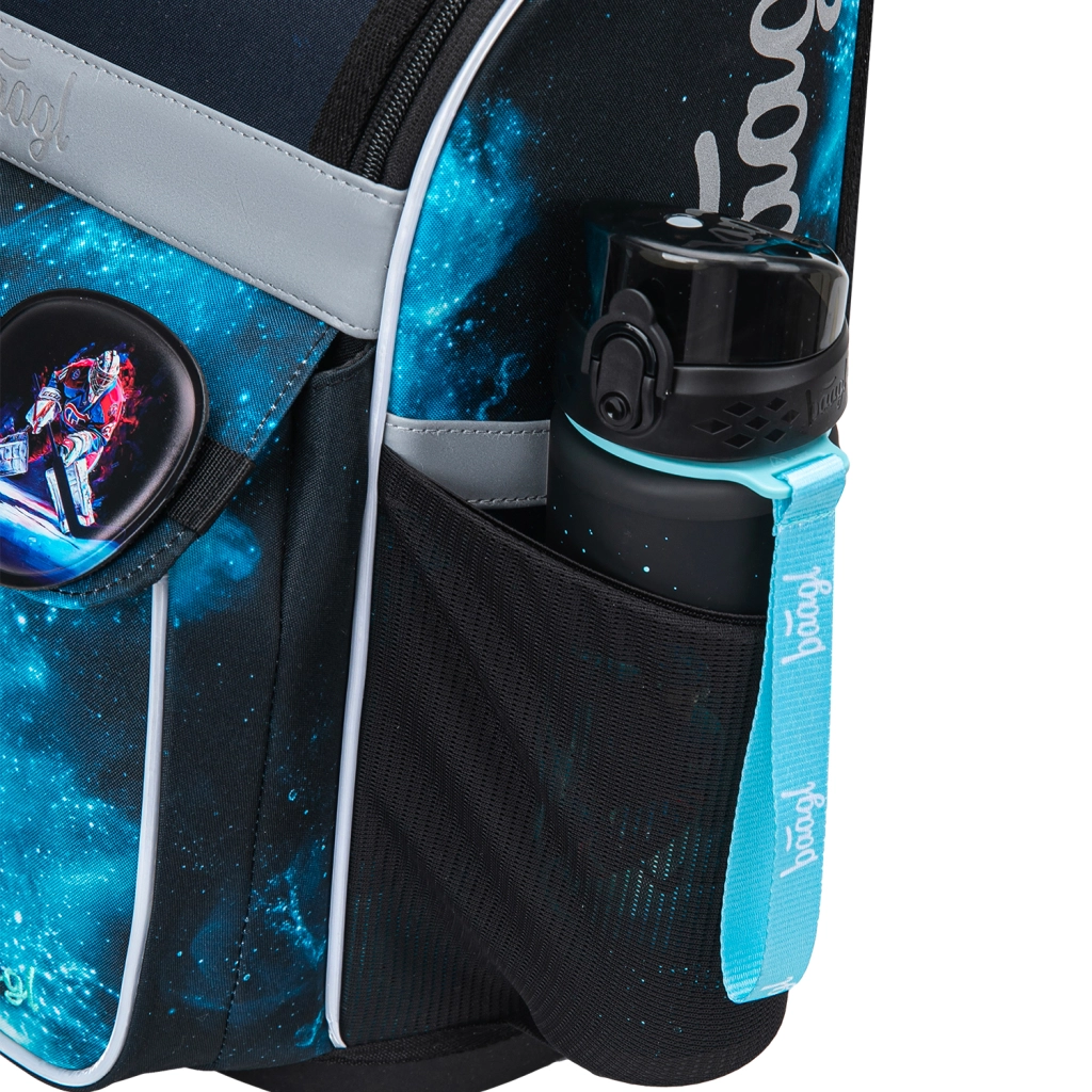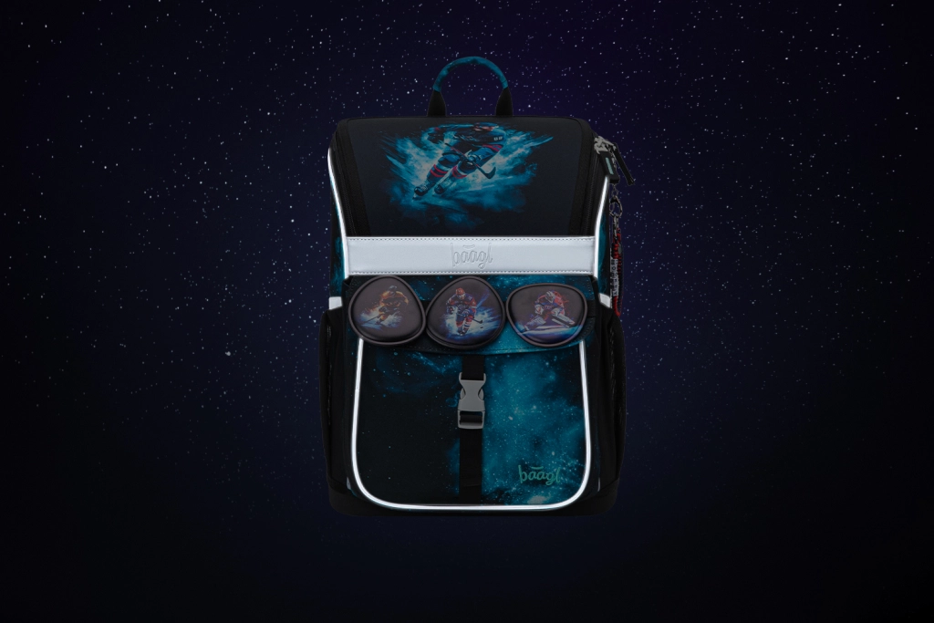 BAAGL Zippy Hoki koolikomplekt pakub kõike, mida laps kooliks vajab – kerge ja stabiilne ranits tugevdatud korpusega, klassikaline pinal kahe klapiga, kott lukuga tasku ning kaelarahakott. Hoki motiiviga disaini saab vahetatavate märkidega hõlpsalt meeleolu järgi kohandada. Tänu helkurelementidele on koolilaps hästi nähtav ka hämaras.