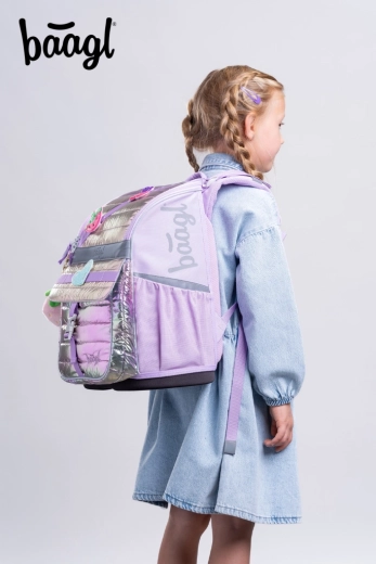 Ühtse Lavender-disainiga täielik koolivarustus ühendab mugavuse, ohutuse ja läbimõeldud korralduse. Ergonoomiline BAAGL Zippy ranits ERGO ADJUSTABLE liugsüsteemiga kohandub lapse kehaga ning tugevdatud korpus, jäik põhi ja veekindel materjal peavad vastu ka nõudlikel koolipäevadel. Kaasas on mahukas pinal, kehalise jaoks nöörkott, pisitarvete rahakott ning kaitsevest/esiliin kooliprojektideks.
