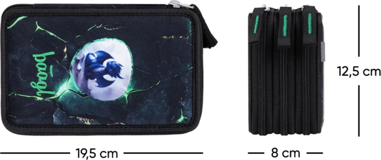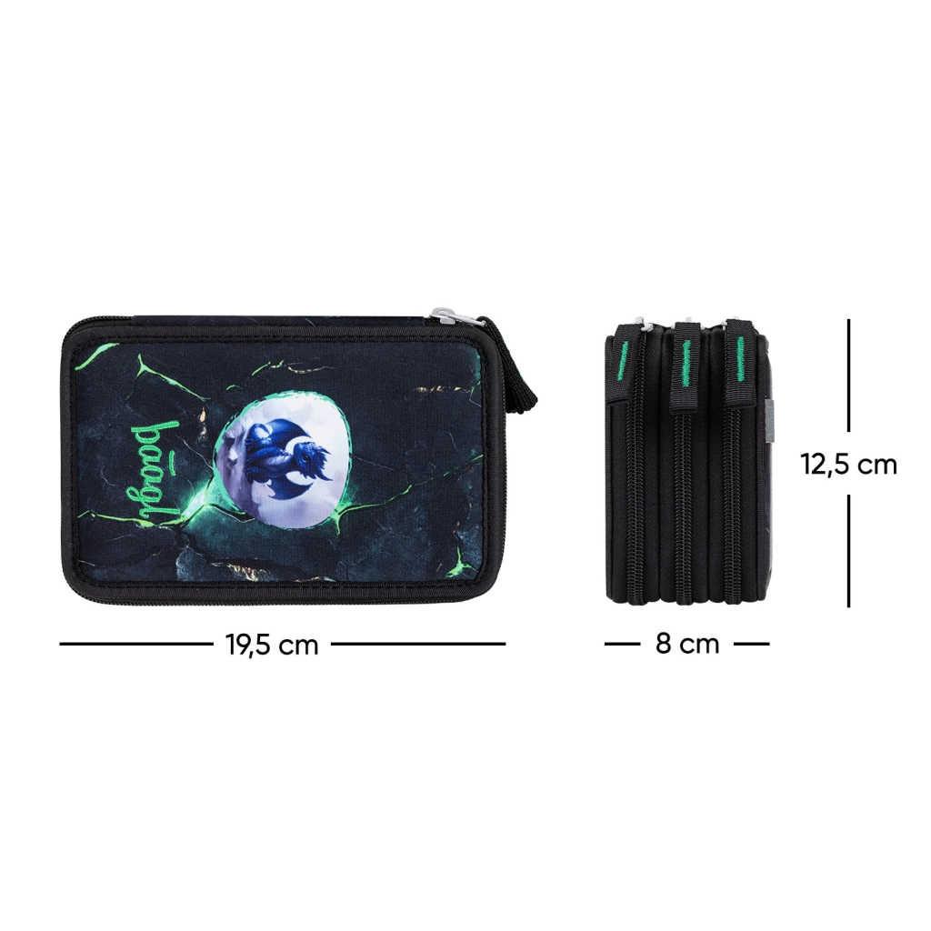 Avasta praktiline ja vastupidav BAAGL kolmeks tasandiks jaotatud pinal silmapaistva draakonidisainiga. Kolm eraldi lukuga kambrit tagavad ülevaatliku hoiustamise kõigele, mida koolilaps vajab – pliiatsitest ja vildikatest kuni joonlaua ja kustukummini. Kaubamärgi YKK-tõmblukud ja tugevdatud konstruktsioon tagavad pika kasutusea igapäevasel kasutamisel.