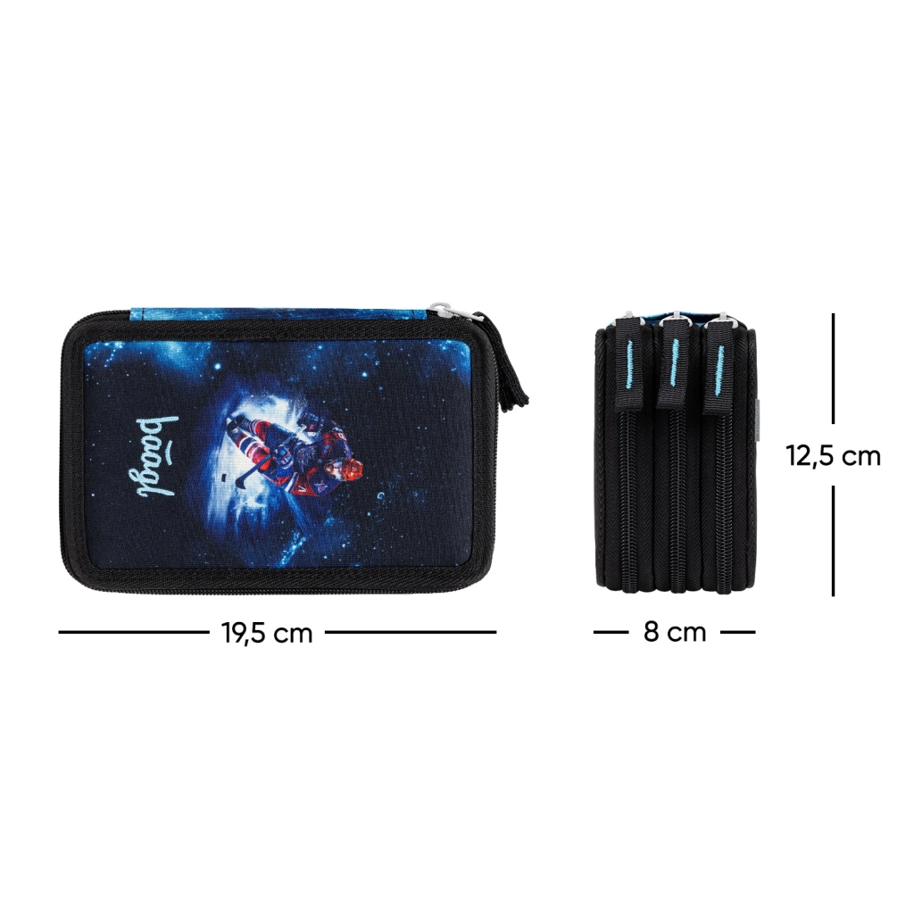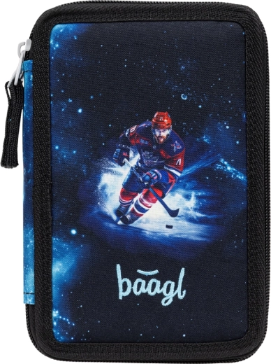 See kolmekihiline pinal atraktiivse hokimotiiviga hoiab sinu koolitarbed selgelt organiseerituna. Tugev tekstiilkonstruktsioon, tugevdatud servad ja kvaliteetsed YKK tõmblukud tagavad pika vastupidavuse ka igapäevasel kasutamisel. Elastsed hoidikud on loodud nii, et need hoiaksid kindlalt nii õhukesi pliiatseid kui ka jämedaid värvipliiatseid ja markereid.
