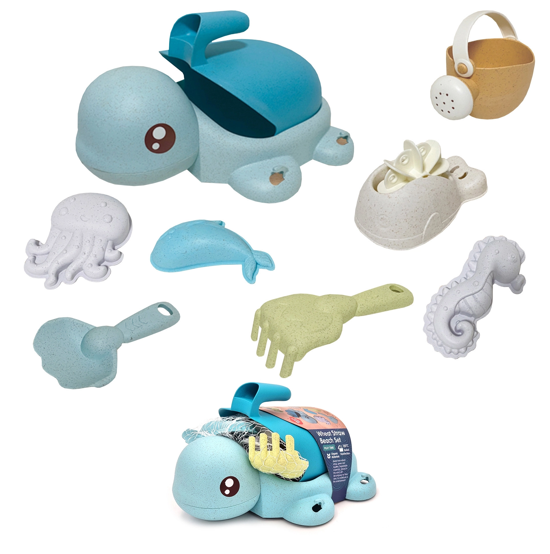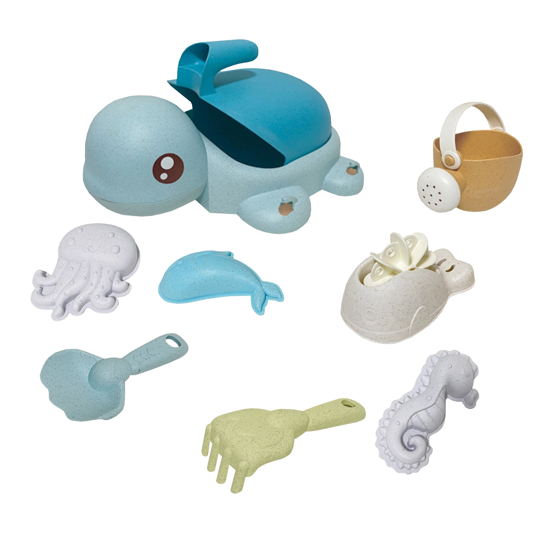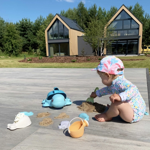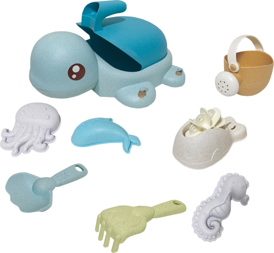 Armas kilpkonn peidab endas täielikku liiva- ja veemängu komplekti – kokku 8 osa õrnades pastelsetes toonides. Valmistatud orgaanilisest, biolagunevast materjalist, mis on loodussõbralik, lastele ohutu ja ideaalne liivakasti, randa, aeda ning vanni.
