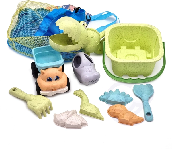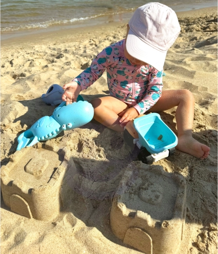 Komplekt toetab laste motoorika, silma–käe koordineerimise, fantaasia ja ruumilise mõtlemise arengut. Tänu autole, krokodilli haarajale ja vormidele ehitavad lapsed losse, sõeluvad liiva ja veavad kaupa. Kõik osad on kerged, populaarsete loomakujude ja sõbralike servadega turvaliseks mänguks.