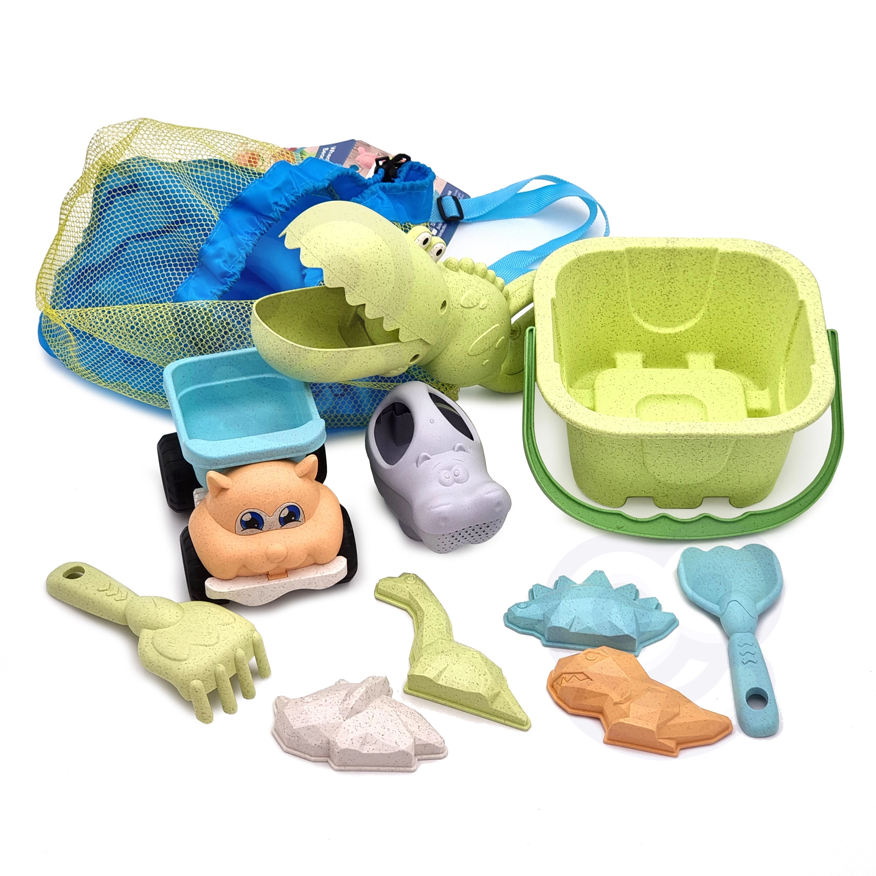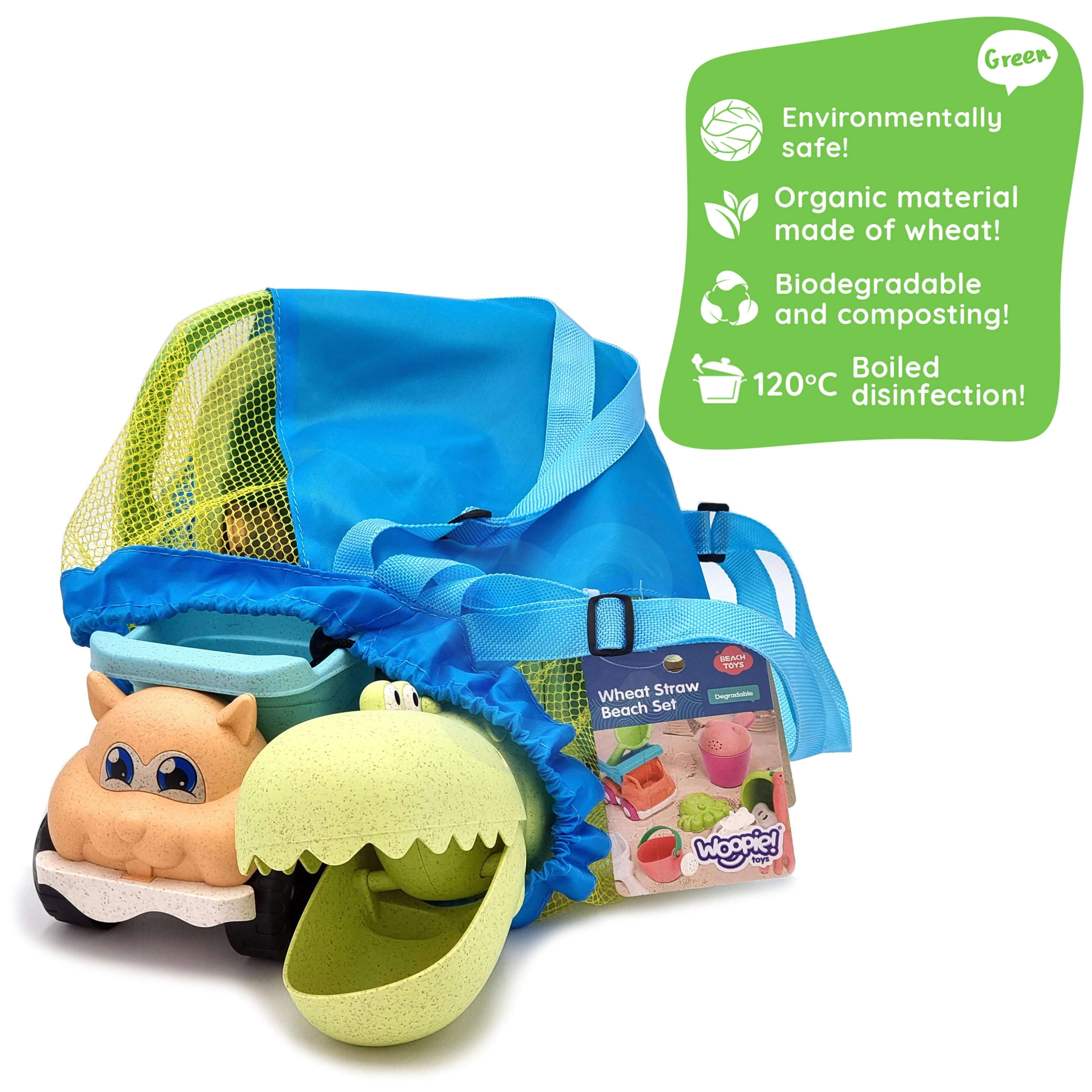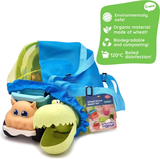 Avastage jätkusuutlik lõbu komplektiga WOOPIE GREEN moodsates pastelsetes toonides. Nisukiududel põhinev orgaaniline materjal on biolagunev ja komposteeritav, nii et lapsed naudivad loomist ja teil on hea tunne loodussäästliku valiku üle. Õhuline võrkseljakott lihtsustab mänguasjade kandmist ja kuivatamist pärast veemänge.