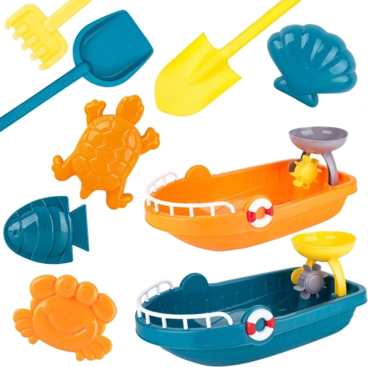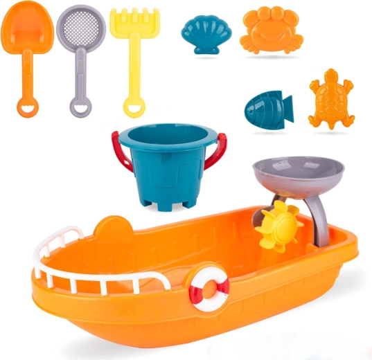 Avastage universaalne laevakomplekt, mis võimaldab lastel kühveldada, sõeluda ja valada liiva või vett, luua kujundeid ning jälgida vee ja liiva karusselli mõlis. Suur laev toimib ühtlasi hoiukarbina kogu tarvikutele, nii et kõik on koos ja valmis teele asumiseks.