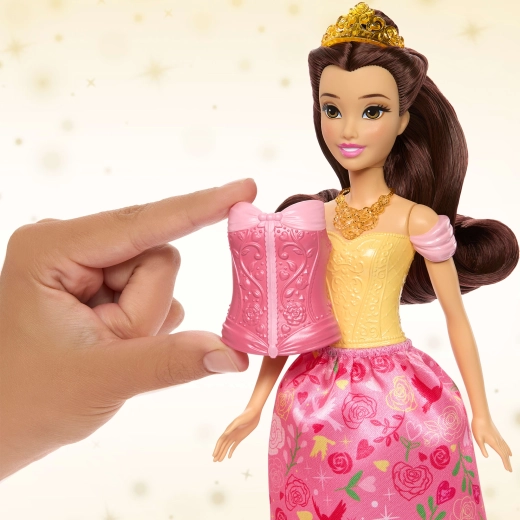 Avastage muinasjutumaailma võlu nukuga Bella, mis on inspireeritud filmist Disney Kaunitar ja Koletis. Saate 2 stiili ühes – elegantne ball ja hubane teeõhtu. Komplektis on 2 vahetatavat korsetti, 2 kangast seelikut, pikad kammimiseks sobivad juuksed, tiara ja teemakohased aksessuaarid. Tänu liigendatud punktidele saab Bellat hõlpsalt seada erinevatesse poosidesse loovaks mänguks.