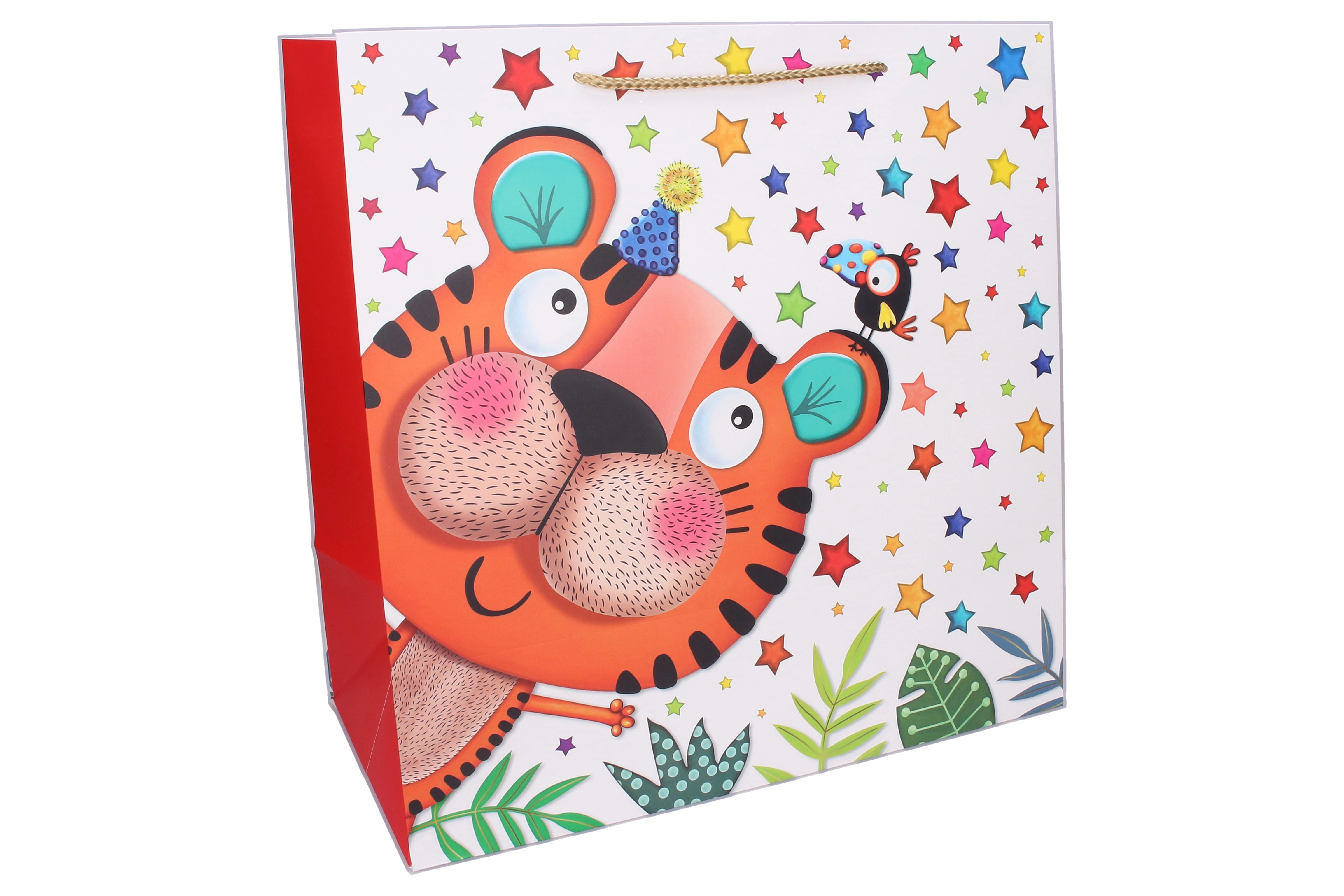 Stiilne ja vastupidav laste kinkekott rõõmsate loomamotiividega muudab iga kingi üleandmise väikeseks peoks. Tõeliselt suur formaat mahutab mugavalt ka suuremõõtmelised ja ebakorrapärased esemed, samas kui tugev nöörsang tagab turvalise kandmise.