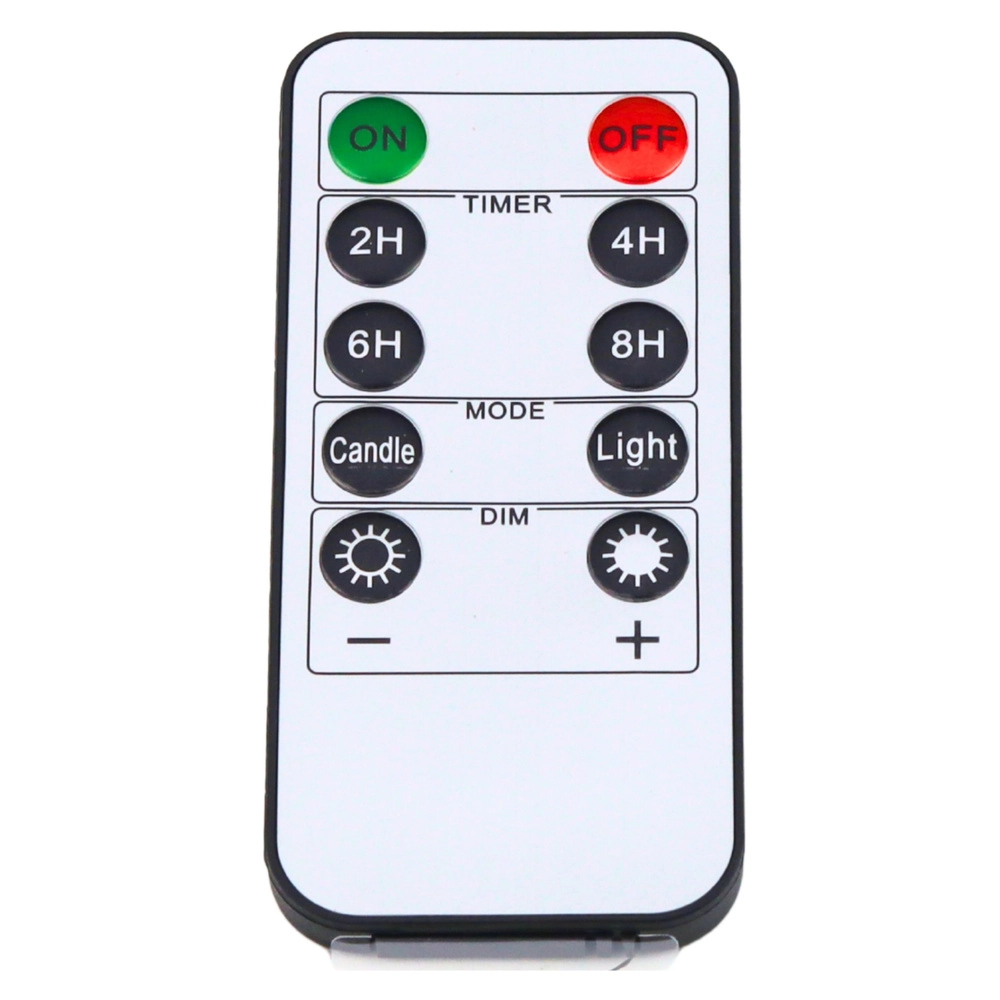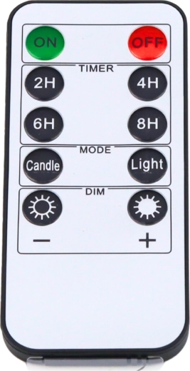 Lülitage sisse, välja, hämardage ja seadistage taimer (2/4/6/8 h) üheainsa puldiga – ilma küünlaid liigutamata.