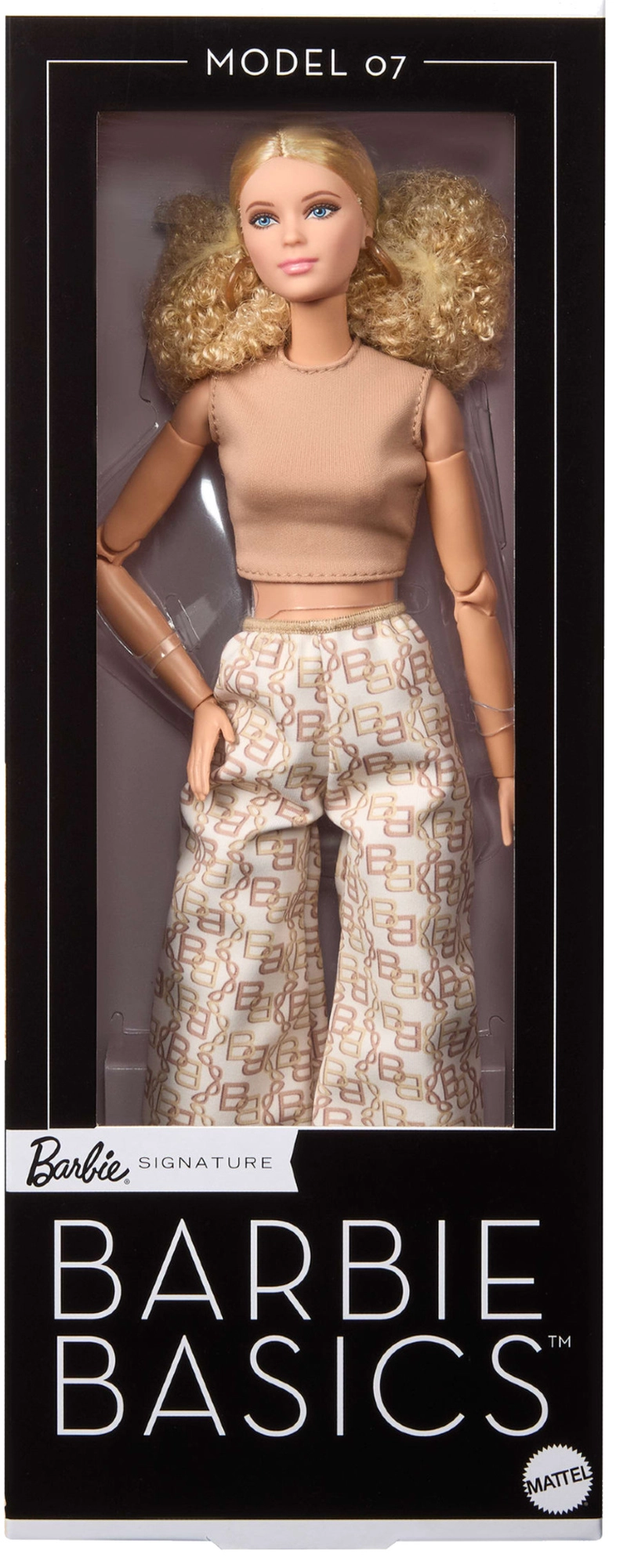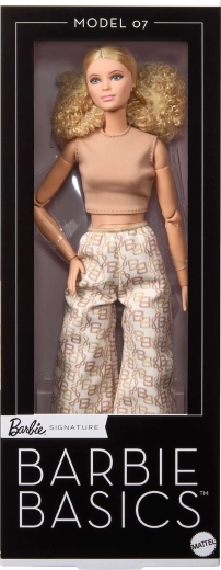 BARBIE Signature Basics Model 07 tähistab minimalismi ja modernset elegantsi. Õrn nägu siniste silmadega, delikaatse meigiga ja heleda jumega rõhutab tema klassikalist ilu. Blondid lokkis juuksed on seatud lihtsasse soengusse, mis sobitub kogu seeria puhta esteetikaga.