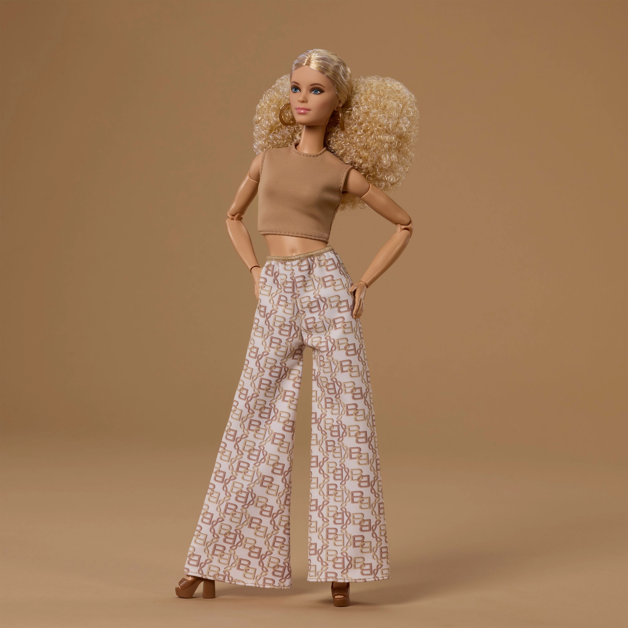 Stiil on hoitud neutraalseis, ajatuis toonides – helepruun, valge ja kuldne. Nukul on elegantne topp ja pikad laiad püksid, mis sobivad suurepäraselt teiste BARBIE lisanditega kombineerimiseks. Tänu standardkõrgusele u 29 cm sobib ta enamiku BARBIE tarvikute ja mööbliga.