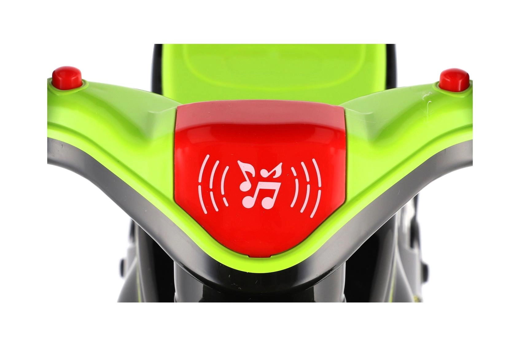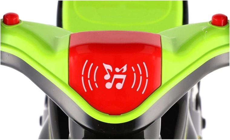 Jooksuratas on varustatud valgus- ja heliefektidega, mis muudavad sõidu kaasahaaravaks elamuseks. Kaasaegne rohe-must teostus atraktiivsete sportlike kaunistustega näeb välja nagu tõeline võidusõidumasin ja motiveerib lapsi aktiivselt liikuma.