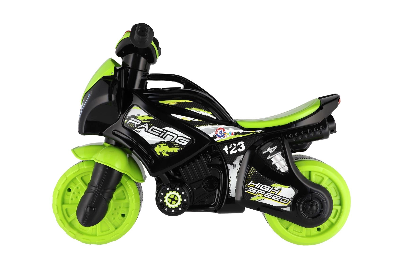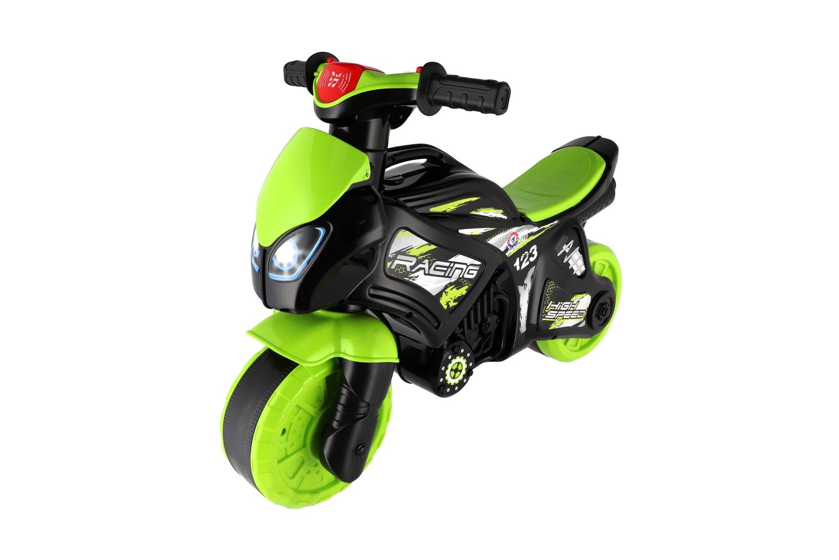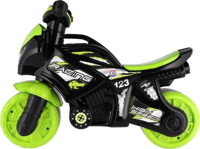 Stiilne lastejooksuratas võidusõidumootorratta kujuga rõõmustab iga väikest sõitjat. Sel on laiad rattad stabiilsuseks, ergonoomiline iste ja kergesti haaratavad lenksukäepidemed. Kaasaegne rohe-must disain sportlike kleepsudega annab realistse ilme ning valgus- ja heliefektid muudavad sõidu veelgi lõbusamaks.