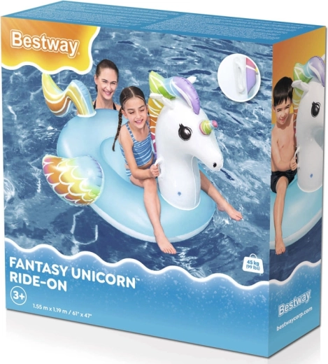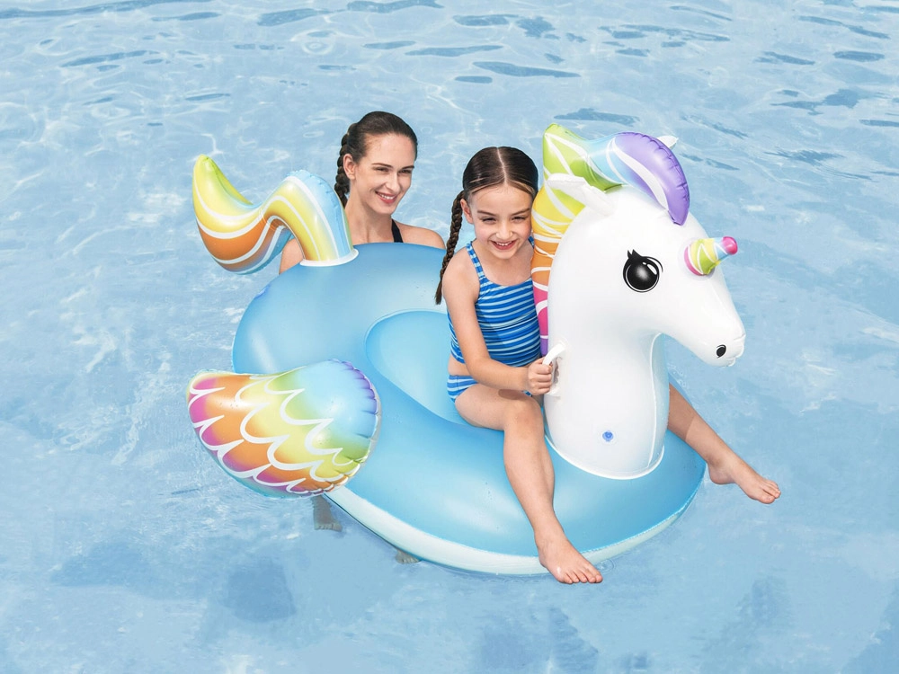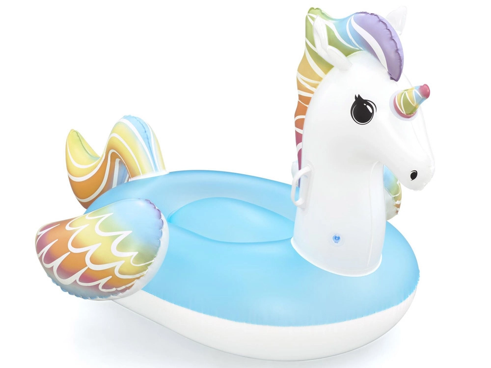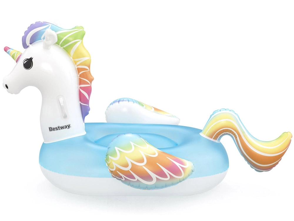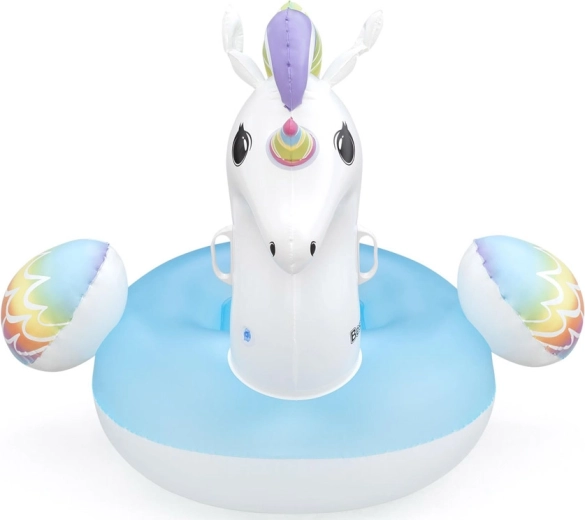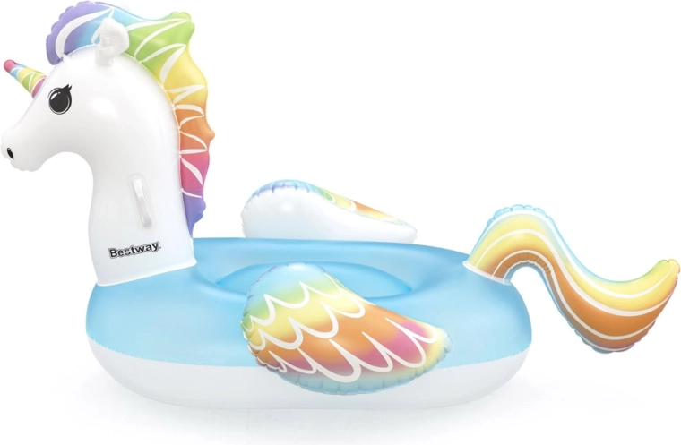 Bestway täispuhutav ükssarvik erksates värvides, tiibade ja vikerkaarevärvilise lakaga, on ideaalne valik suviseks veemõnuks. Tänu stabiilsele konstruktsioonile ja praktilistele käepidemetele saavad lapsed nautida mugavat sõitu ja turvalisemat mängu veepinnal.