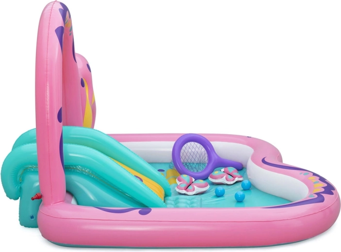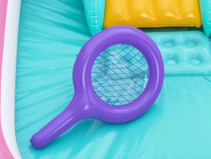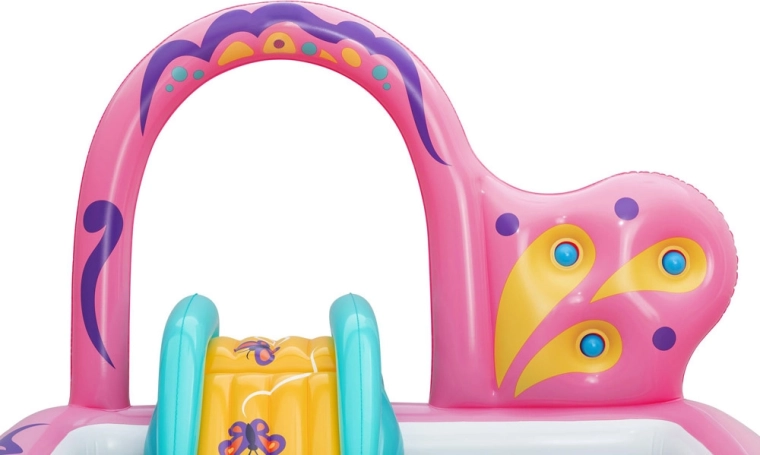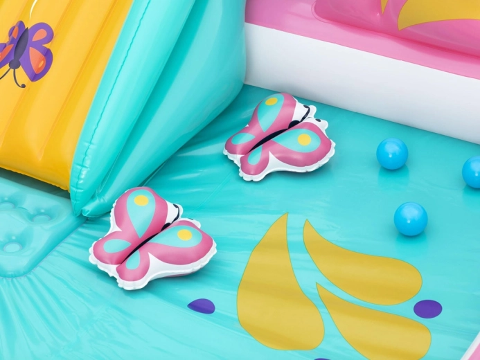 Komplektis on lõbusad ujuvmänguasjad ning täispuhutud liblika- ja rõngakujulised elemendid. Pehmed seinad ja polsterdatud maandumisalad tõstavad mugavust ja turvalisust. Vastupidav vinüül on lihtsasti puhastatav ning kaasas olev paranduspaik pikendab kasutusiga. Ühenda voolik, pumpa täis ja lõbu võib alata.