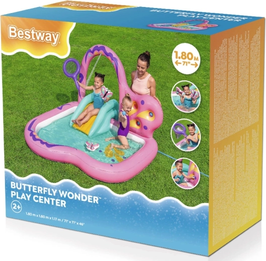 Bestway Liblikas täispuhutav veemängukeskus muudab aia turvaliseks rõõmumaaks. Tänu kompaktsetele mõõtudele 180 × 180 × 117 cm mahub see ka väiksematesse kohtadesse, pakkudes siiski rohkelt tegevusi: liug madalasse pläristamistsooni, kaarduša ühendus aiaalusega ning avad pallide loopimiseks ja sorteerimiseks, mis arendavad peenmotoorikat.