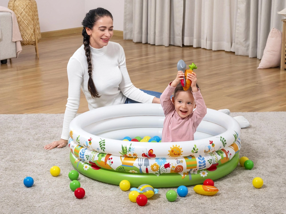 Nauti mängu terve aasta – toas pallidega või õues veega. Madal veemaht sobib suurepäraselt esimesteks vee-elamusteks ja turvaliseks värskenduseks.