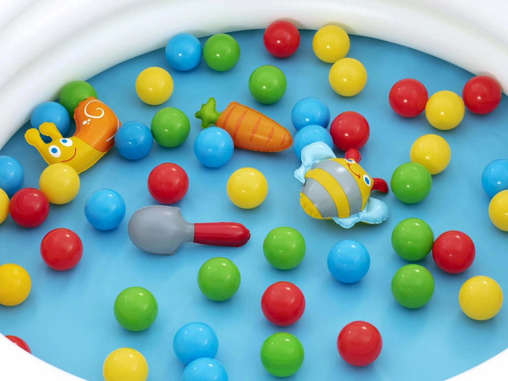Komplektis on 46 värvilist palli ja 4 avatavat üllatuspalli vahvate mänguasjadega (nt tigu, mesilane, porgand, kühvel), mis ergutavad uudishimu ja loovust. Lihtne paigaldus, kerge hooldus ja kaasas olev paranduspaik tagavad muretu kasutuse.