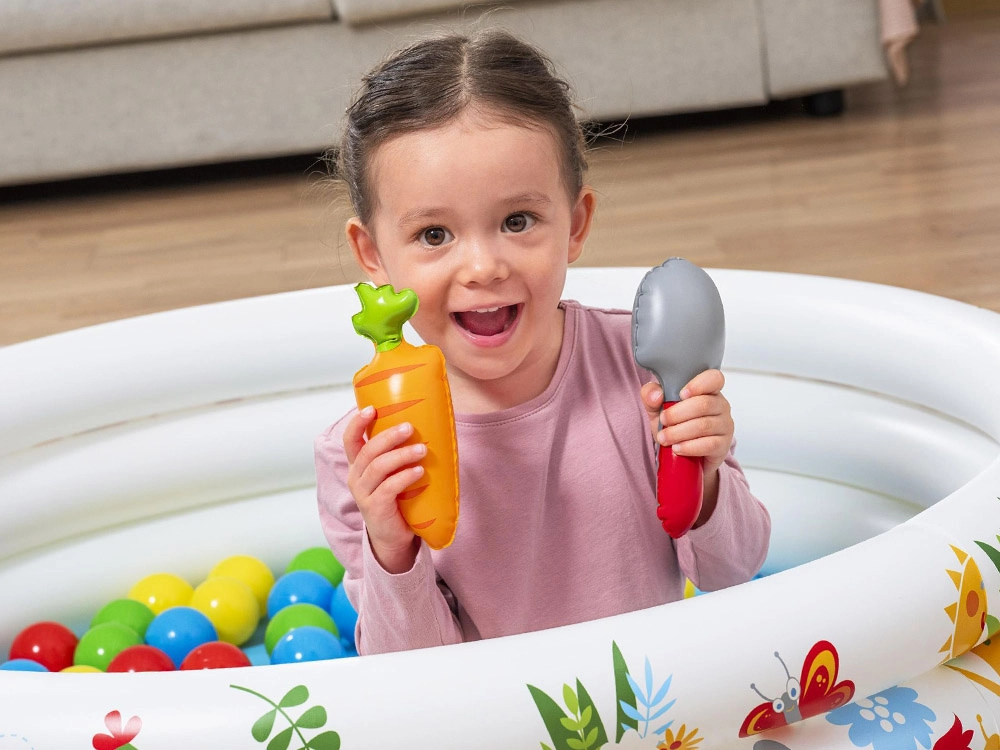 Avasta kevade mänguline maailm lillede, mesilaste ja aiakujunditega. Bestway Sprouts & Spring pakub pehmeid, täispuhutavaid seinu turvaliseks mänguks, mis arendab peenmotoorikat, koordinatsiooni ja meelte tajumist tänu värvidele, kujudele ja tekstuuridele. Soojadel päevadel saad selle kergesti veega täita ja muuta värskendavaks madalaks basseiniks.