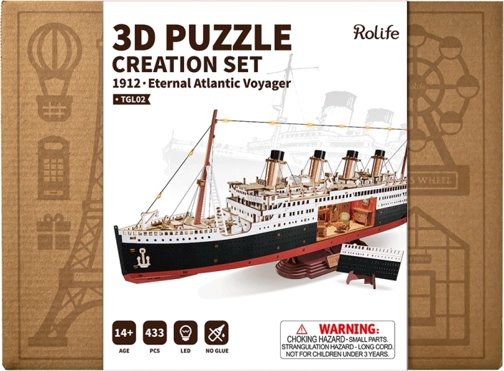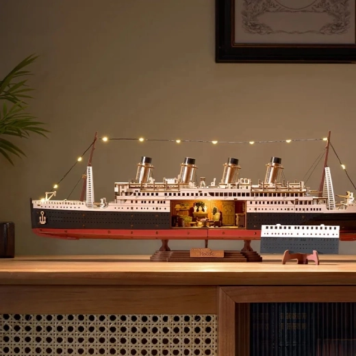 See stiilne DIY‑komplekt toob sinuni realistliku legendaarse ookeanilaeva mudeli täpsete proportsioonide, nelja korstna ja rikkalikult kujundatud tekkidega. Tänu eemaldatavale külgpaneelile saad piiluda kajutitesse ja koridoridesse, samal ajal kui soe LED‑valgustus rõhutab interjööri ja eksterjööri detaile. Valmis mudel toimib stiilse sisustuskaunistusena elutuppa, kabinetti või õpilastuppa.